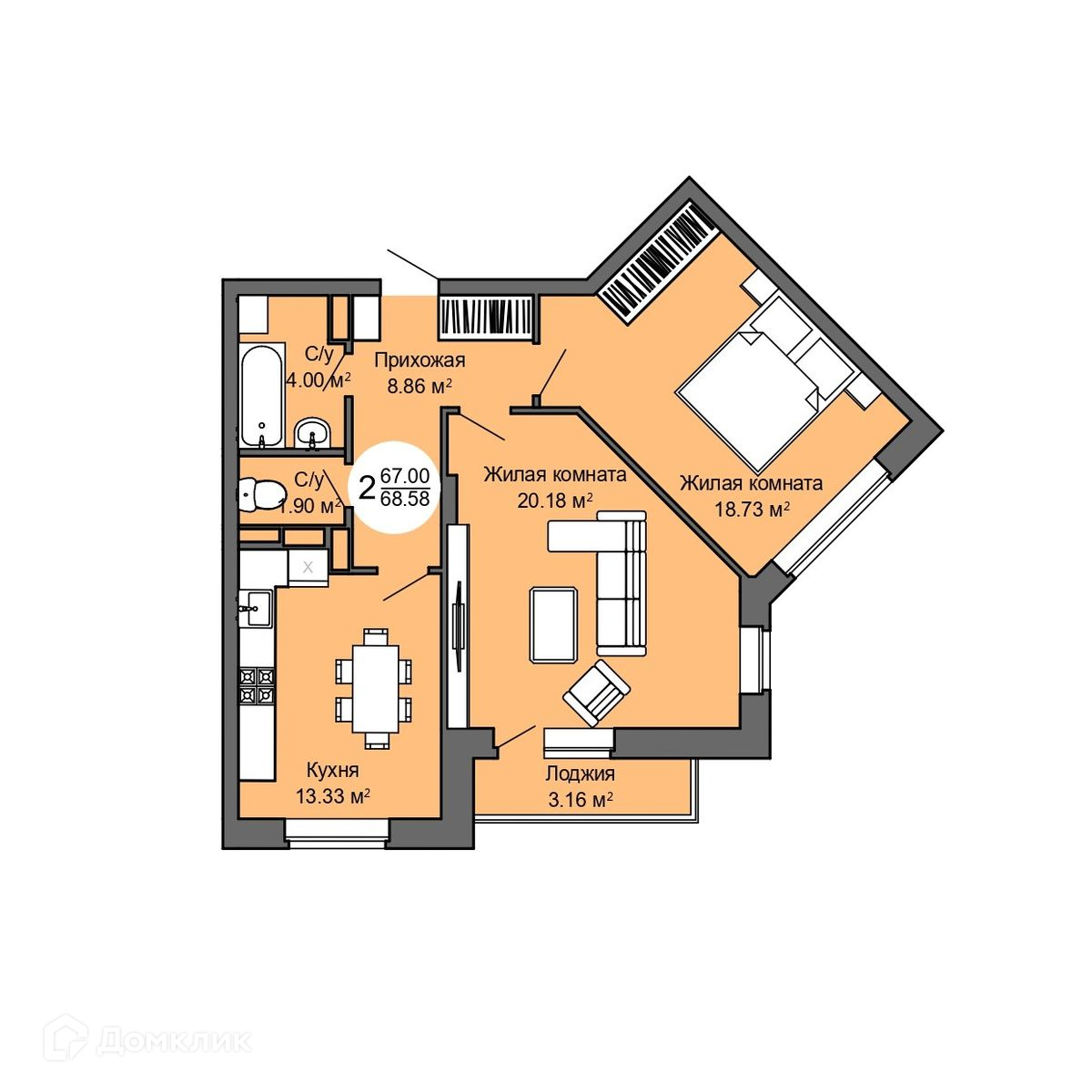 Доступна к покупке 2-комнатная квартира в новом жилом комплексе "ЖК Дом по ул. Межквартальная" 🏢.