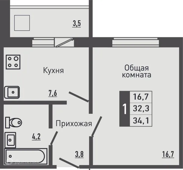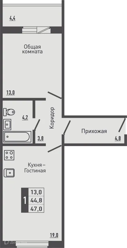 1 комн. квартира в Орле в ипотеку от 26 140 руб/месяц