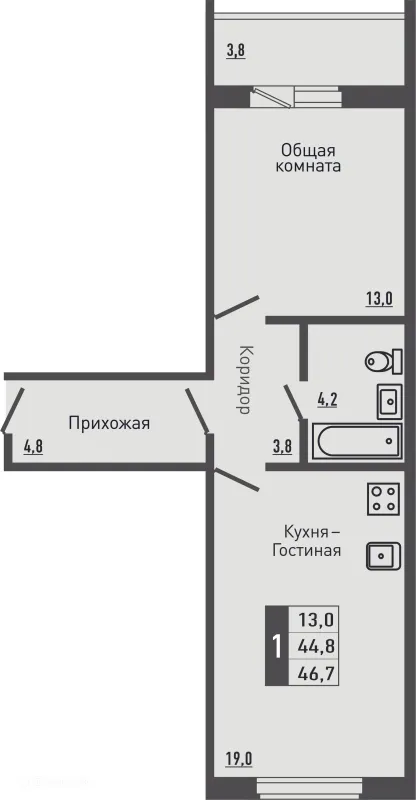 1 комн. квартира в Орле в ипотеку от 30 802 руб/месяц