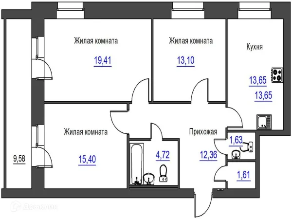 3 комн. квартира в Орле в ипотеку от 33 416 руб/месяц