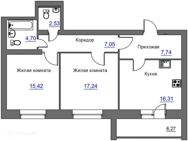2 комн. квартира в Орле в ипотеку от 28 271 руб/месяц