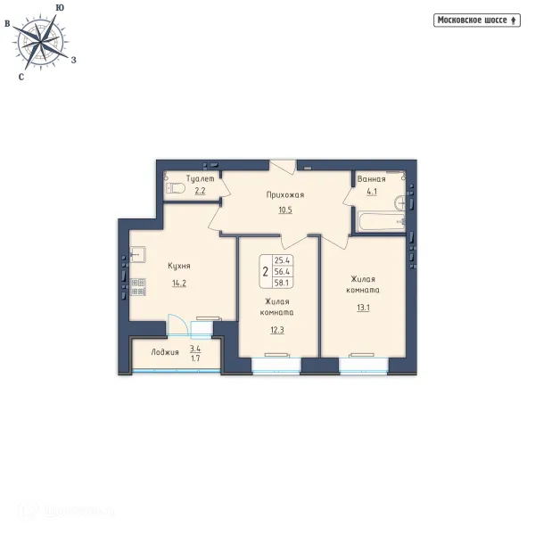 2 комн. квартира в Орле в ипотеку от 38 822 руб/месяц