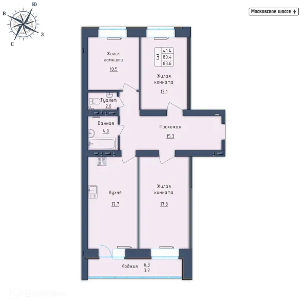 3 комн. квартира в Орле в ипотеку от 55 384 руб/месяц