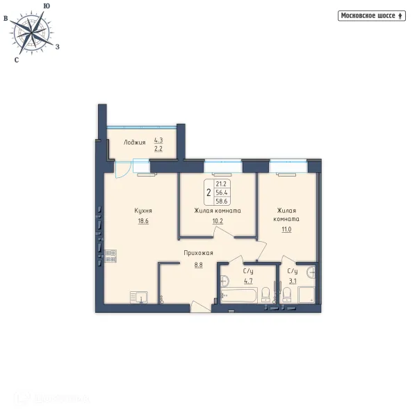 2 комн. квартира в Орле в ипотеку от 43 463 руб/месяц