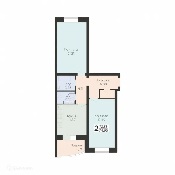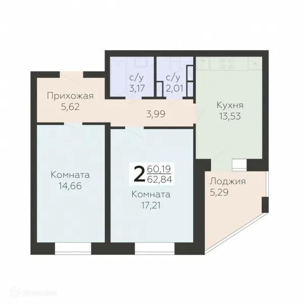 2 комн. квартира в Орле в ипотеку от 43 079 руб/месяц