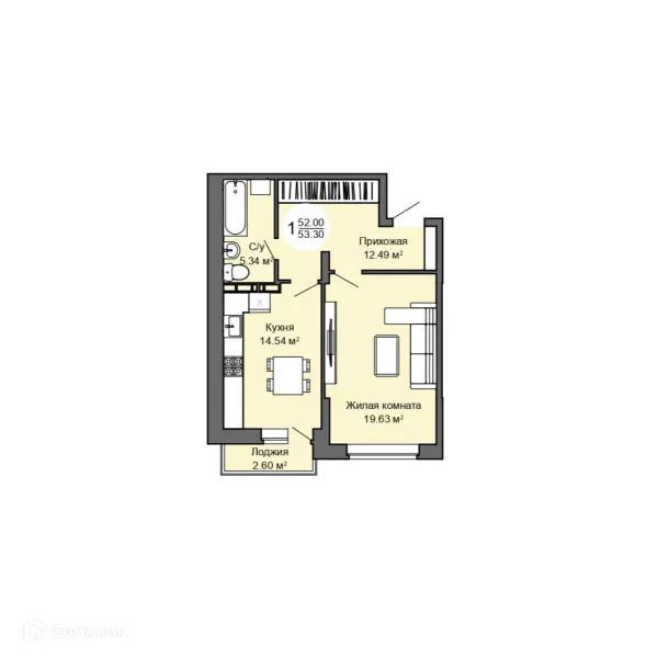 1 комн. квартира в Орле в ипотеку от 35 428 руб/месяц